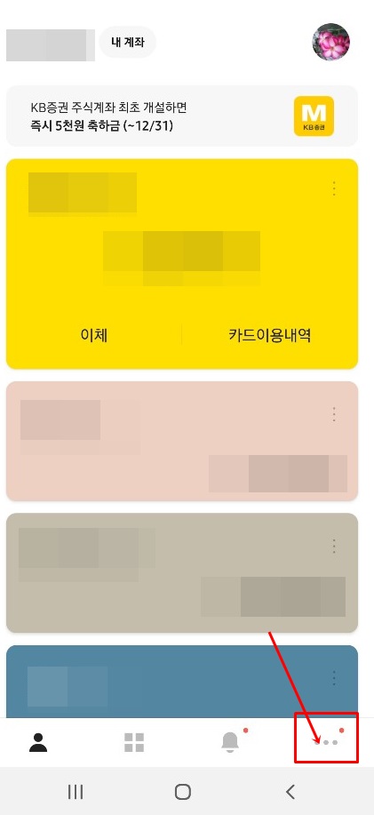 카카오뱅크 이용하고 있다면 신용등급 조회 간단하게 할 수 있습니다. 카카오뱅크 어플을 실행시켜서 가장 아래의 점 3개를 선택합니다. 그러면 자신의 정보가 나옵니다. 여기서 내 신용정보를 선택합니다.
